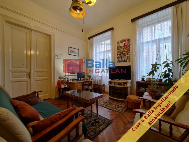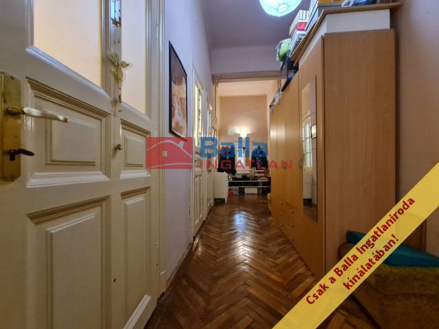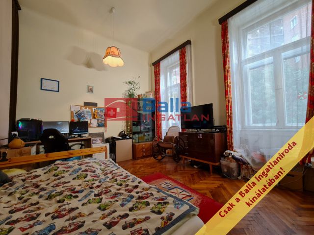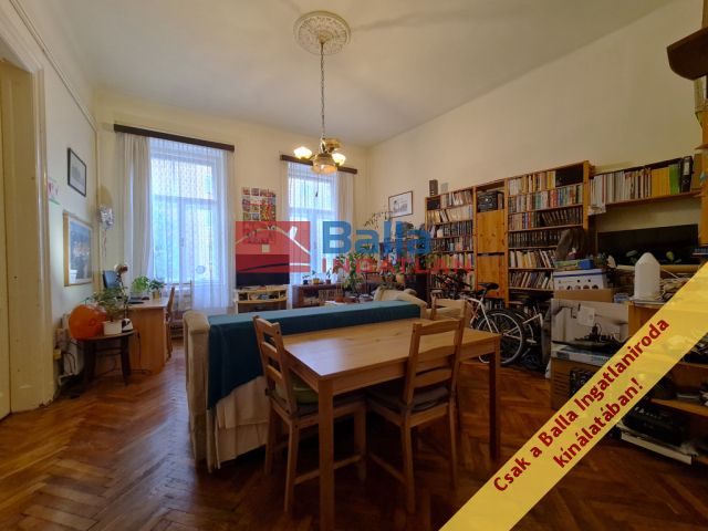 A lakás klasszikus polgári hangulatot áraszt: 370 cm-es belmagasság, tágas nappali (27,5 m²), két hálószoba, külön fürdő és WC, valamint eredeti fa ablakok, fa tokozással. A nagyobbik hálószoba 26 m²-es, melynek egy részét gardróbszobaként választották le, praktikus és elegáns megoldás. A kisebbik hálószoba 6,7 m²-es, korábban fürdőszoba volt, de így egy második, szeparált hálóhelyiség is rendelkezésre áll. A két hálószoba diszkréten a nappali két oldalán helyezkedik el, így a lakás belső elrendezése ideális családok számára is.